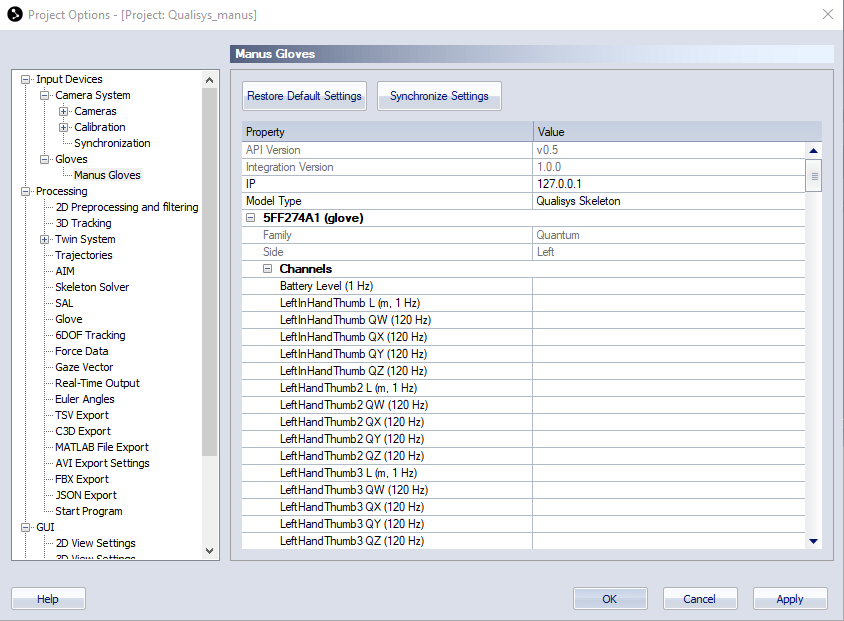 The MANUS Gloves settings are managed via the MANUS Gloves settings page.