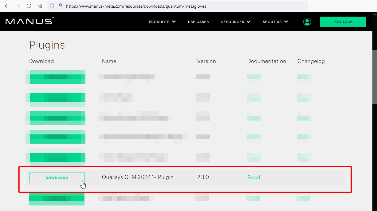 - The QTM 2024.1 Plugin for MANUS Core 2.3 can be downloaded from the MANUS Resource Center.