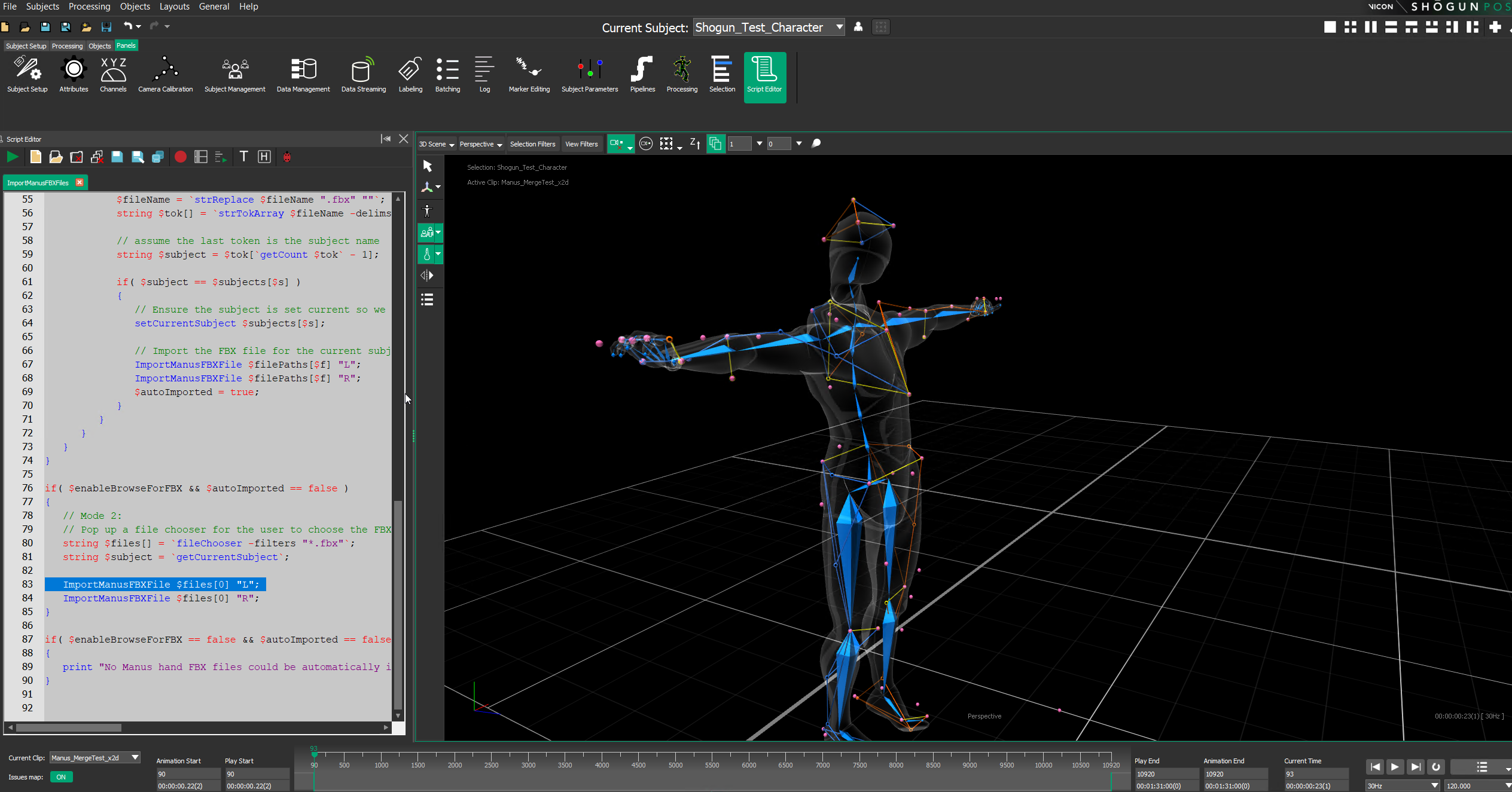 Allow the script to process and merge the hand data onto the body data in Shogun Post.