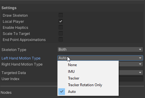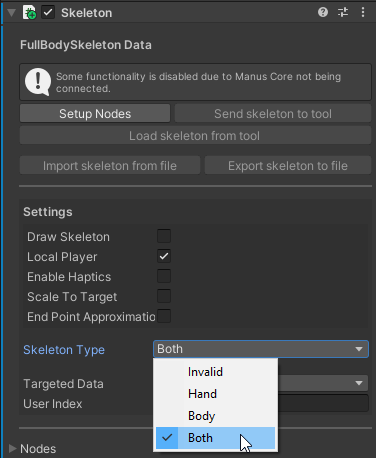 option to the appropriate type based on what you intend to animate using MANUS Core:- For just the hands, set it to