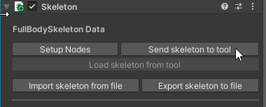 After setting up the above parameters, the skeleton is now ready to be animated. When entering play mode, the skeleton should animate according to the chosen targeted data.