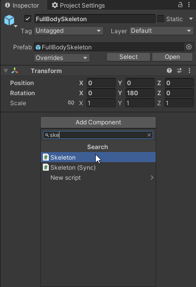 Select the root of the model's game object and add the Skeleton script as a new component. You can find it under