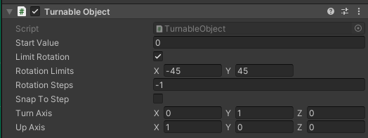Turnables are objects that can be rotated by the player. They are often used for knobs, dials, or other objects that can be turned. To make an object turnable, follow these steps: