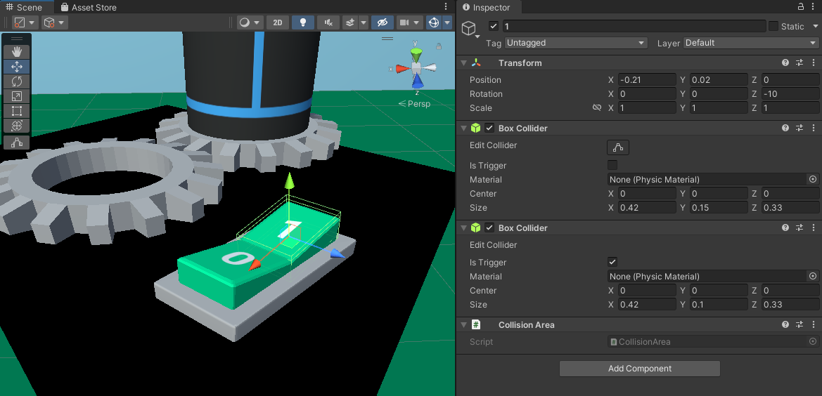 Add two collision areas for both sides of the switch with colliders. These collision areas define the regions where the player can interact with the switch.