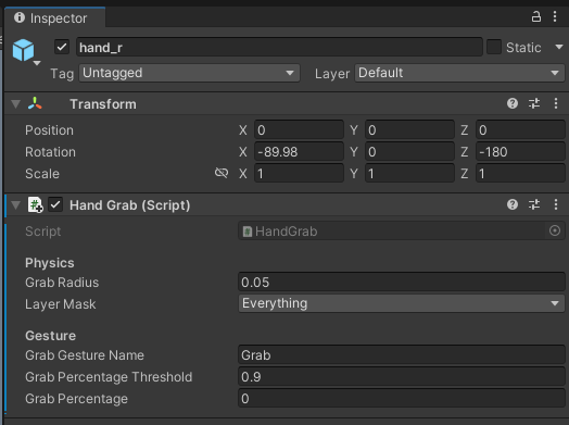 Optionally, you can modify the grab radius or the physics layer to customize the hand interactions.