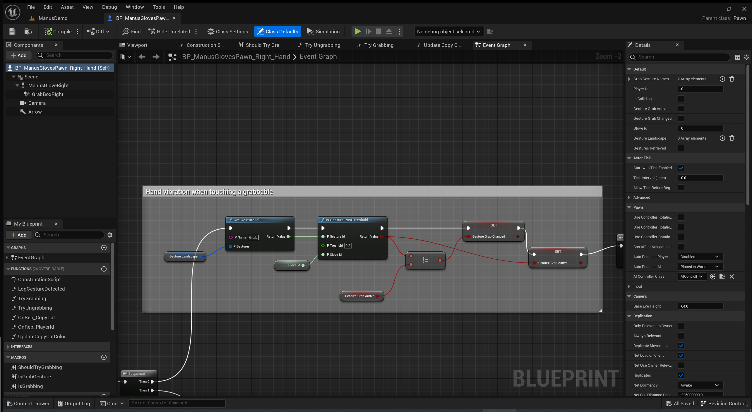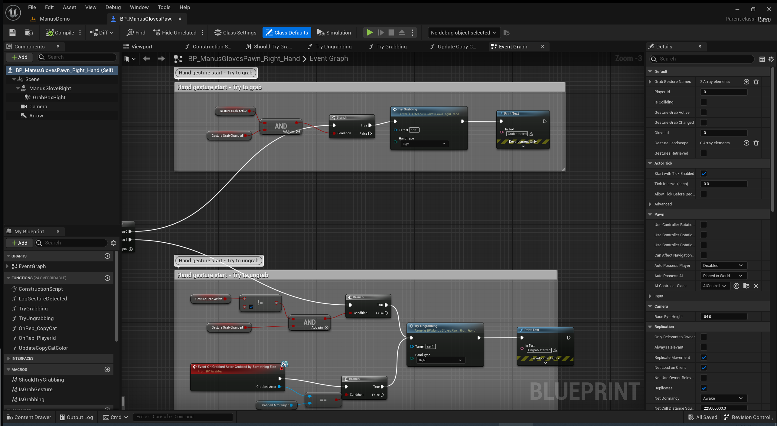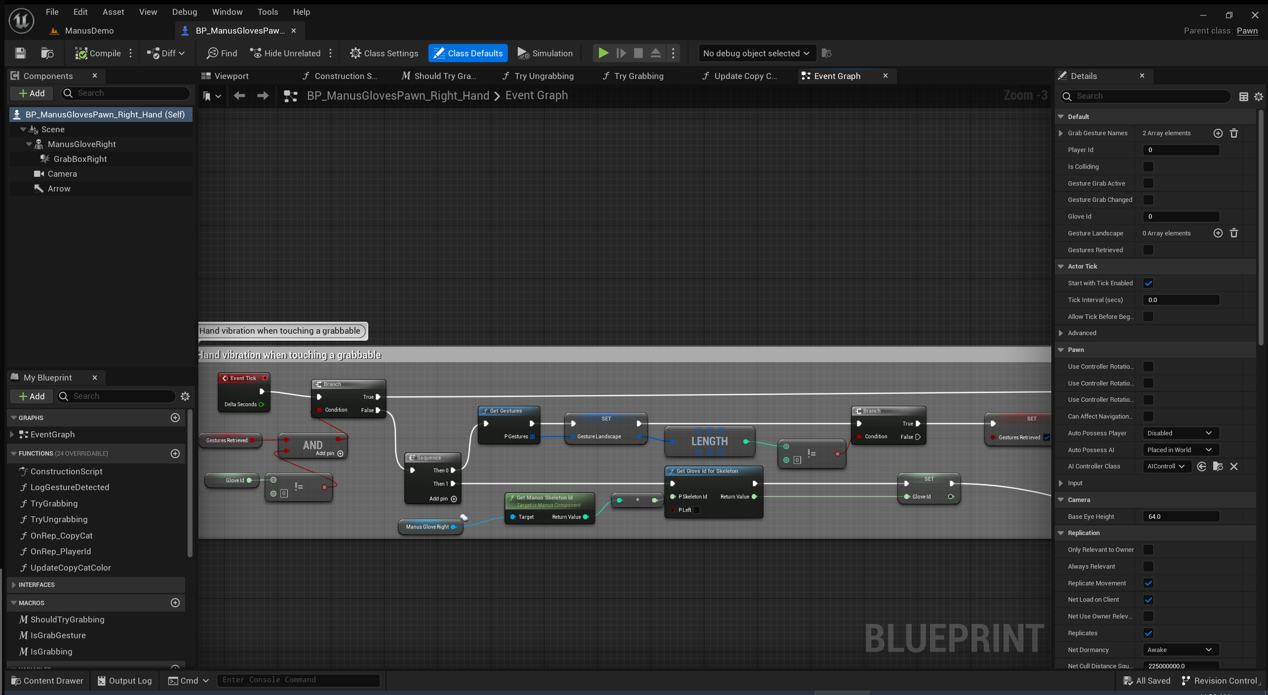First open the BP_ManusGlovesPawn_Right/Left_Hand