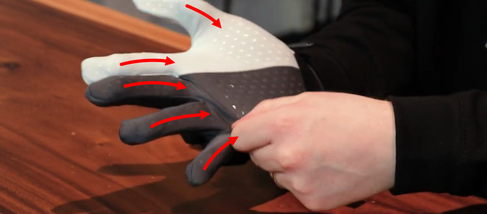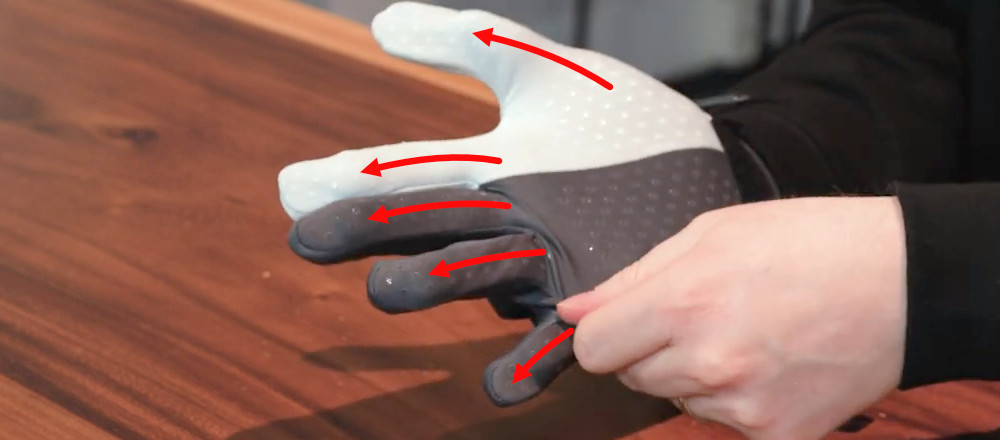 - Pull the glove fabric of each finger to loosen the glove.