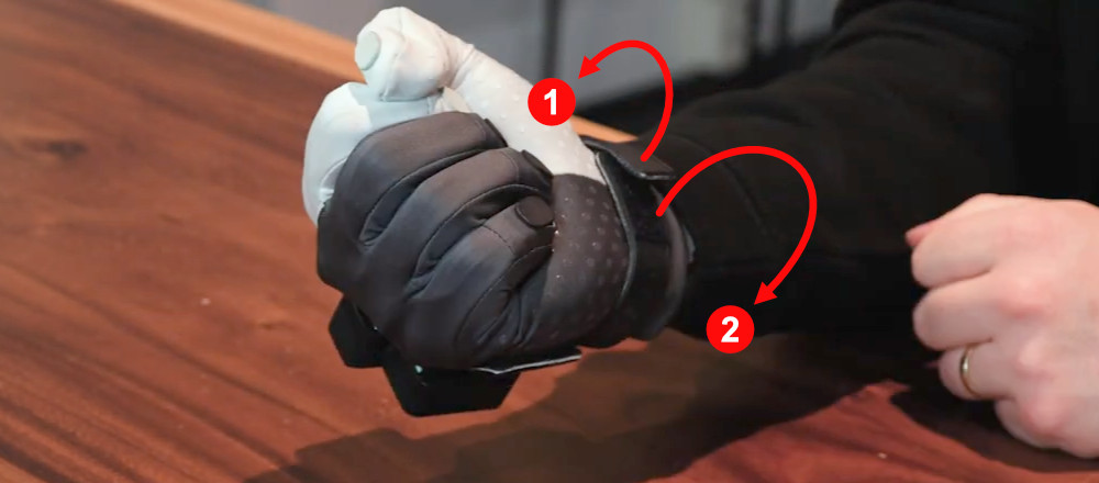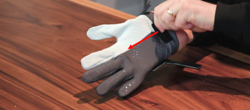 - Insert your fingers and pull the fabric to slide your hand into the glove.