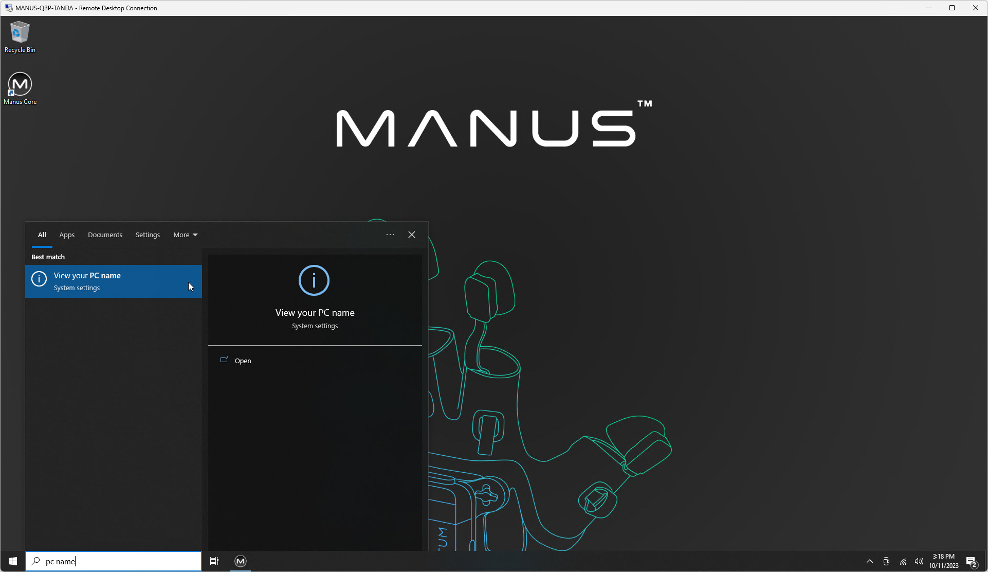 Open the Windows Start menu, search for "pc name" and open the System settings: