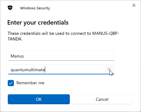 Your MANUS Quantum Bodypack has been set up with a default username and password.