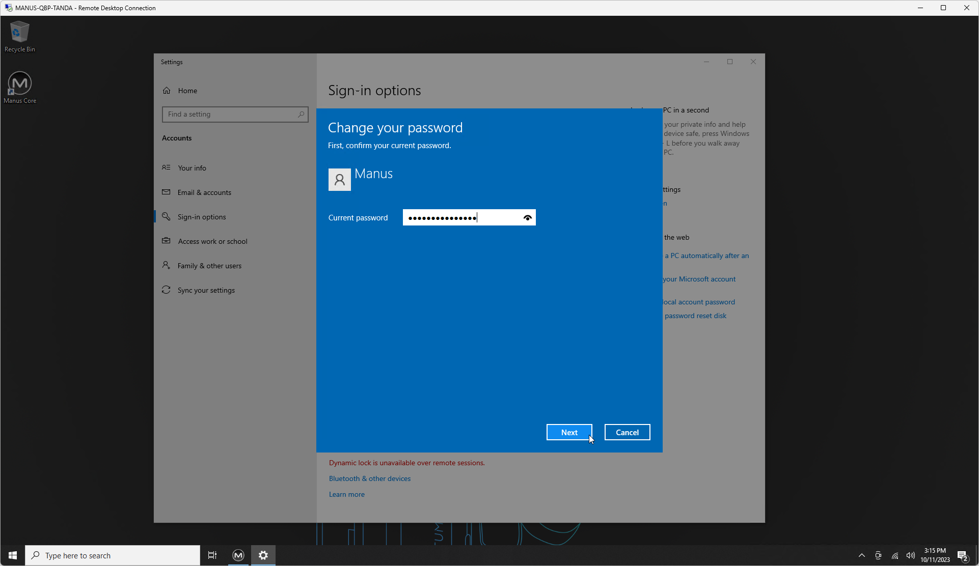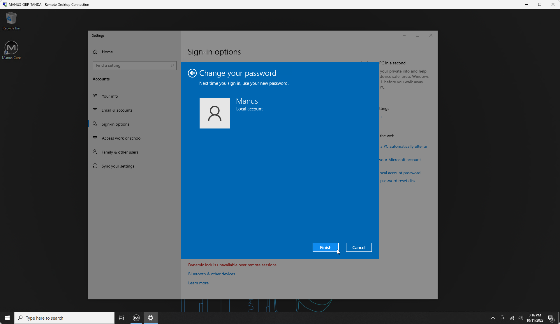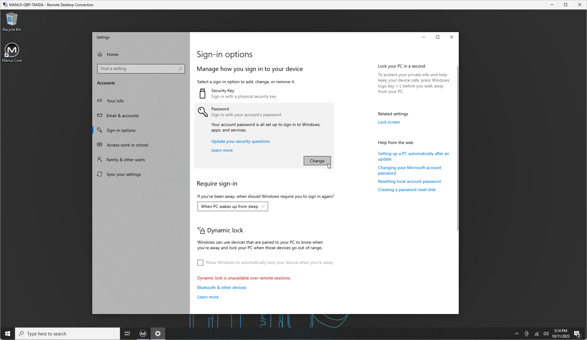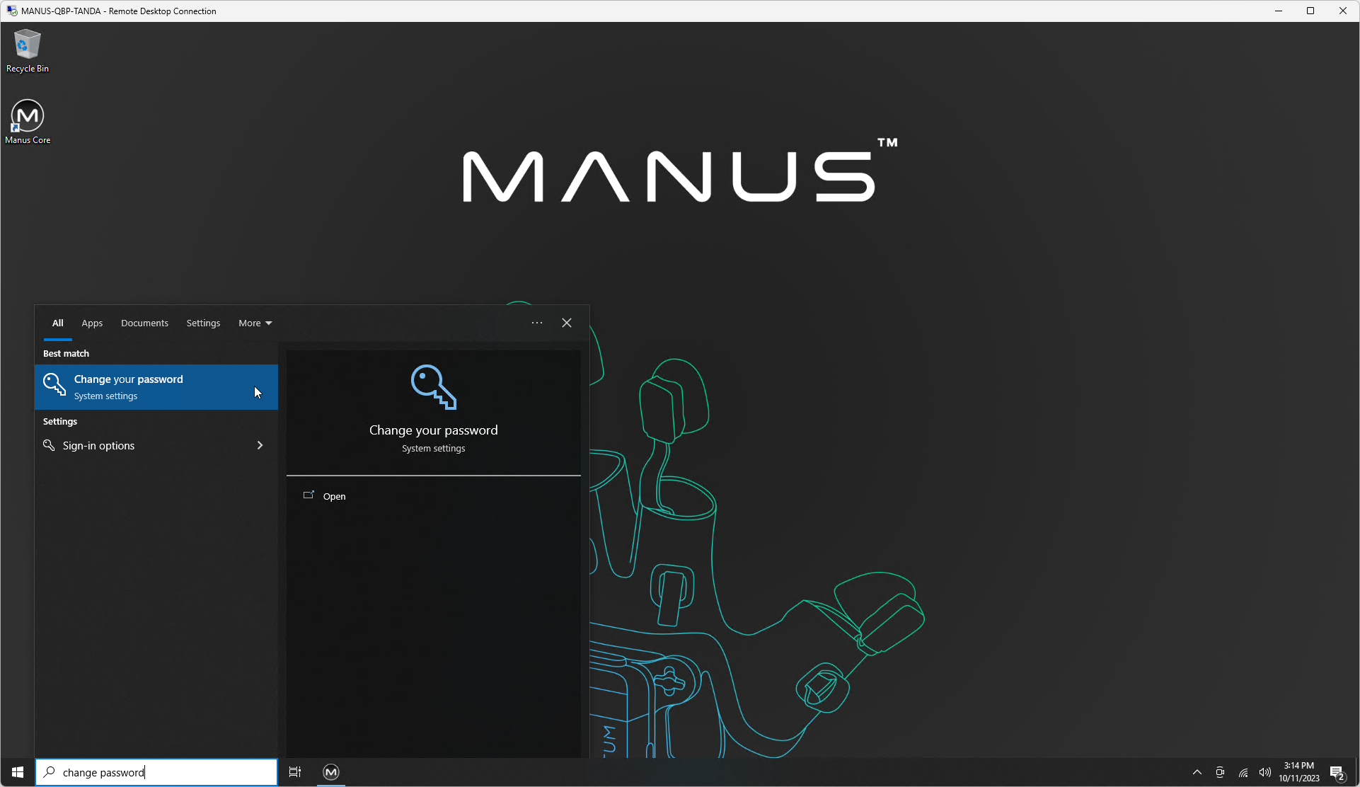 Open the Windows Start menu, search for "change password" and open the System settings: