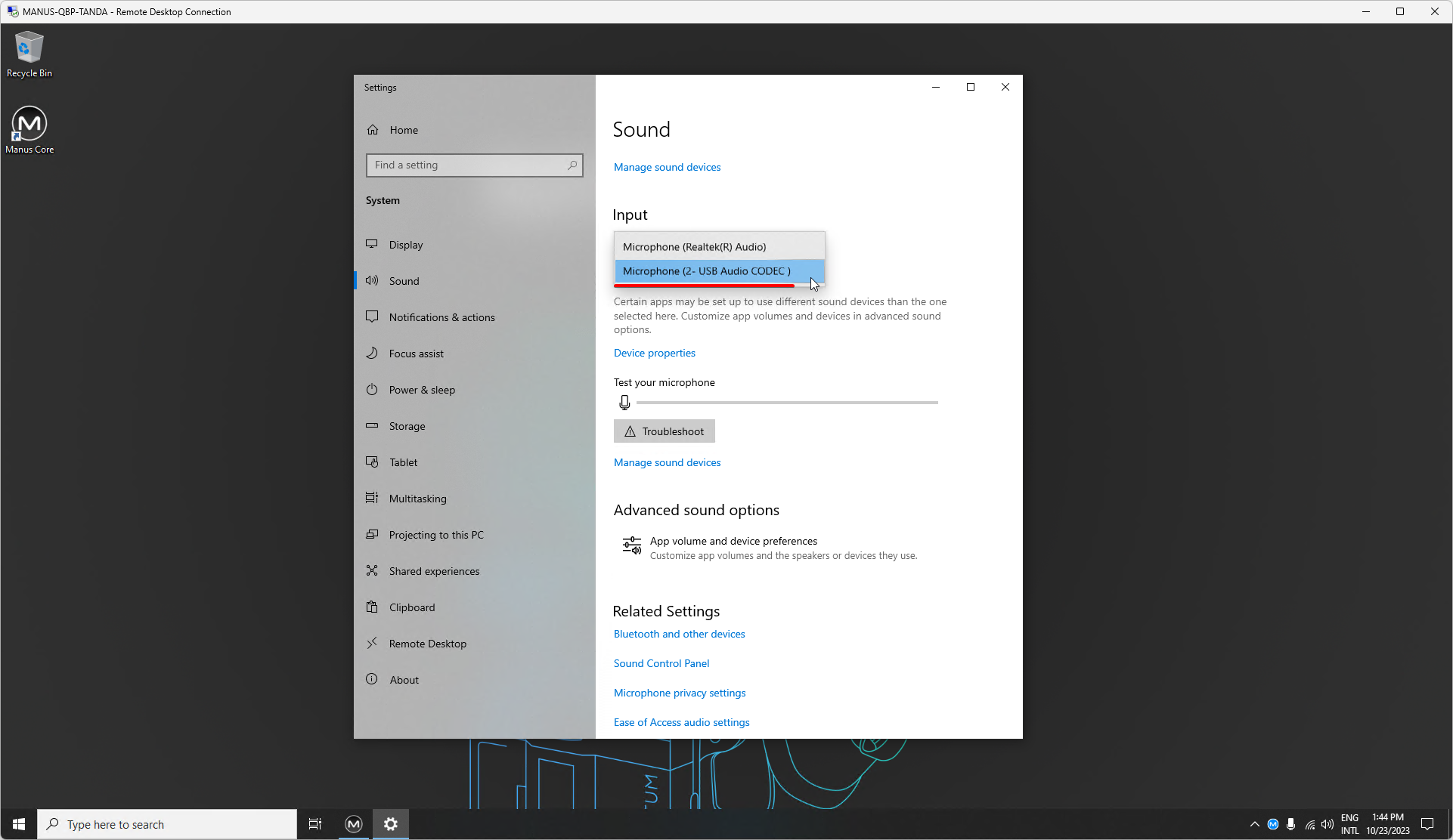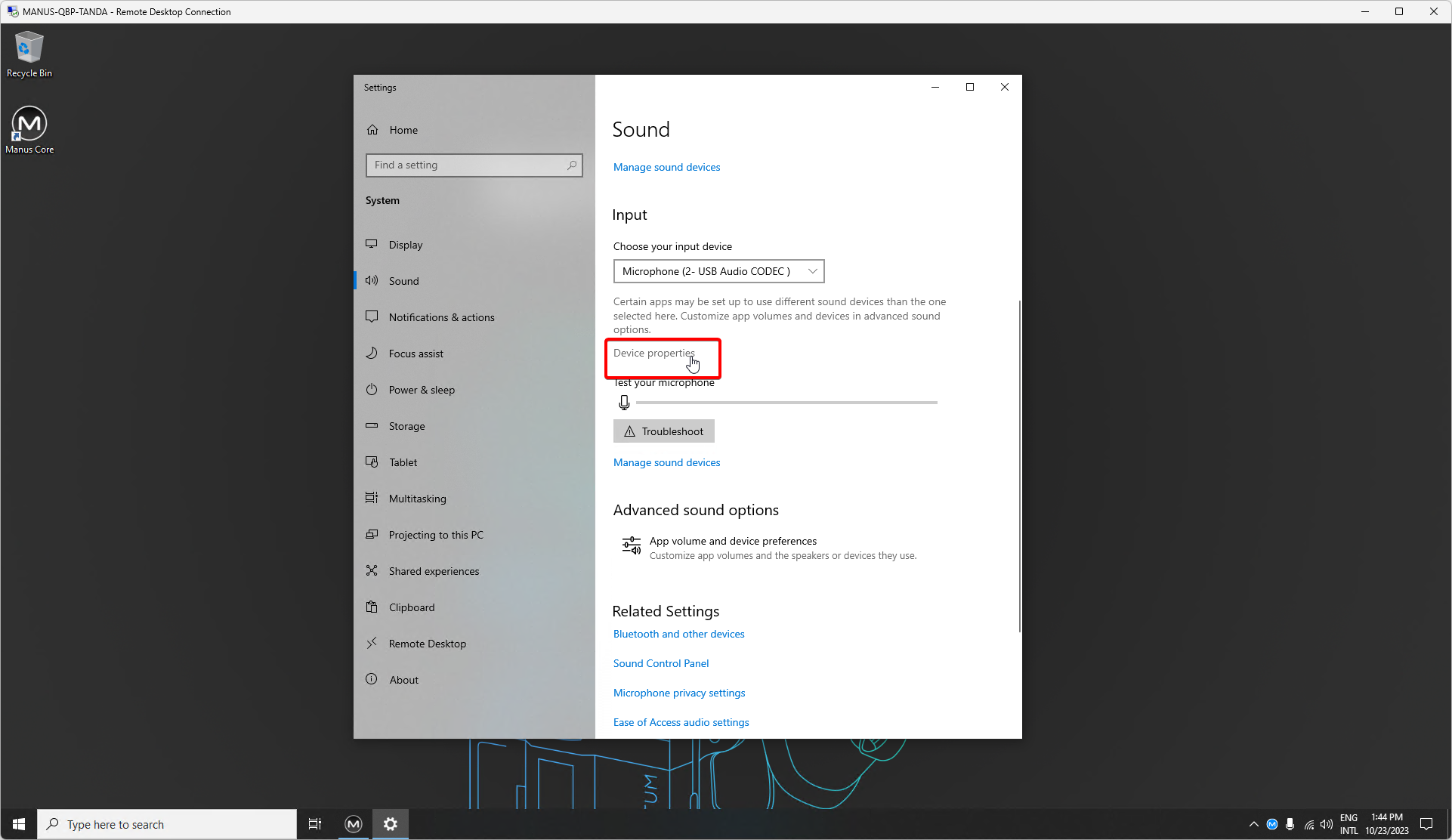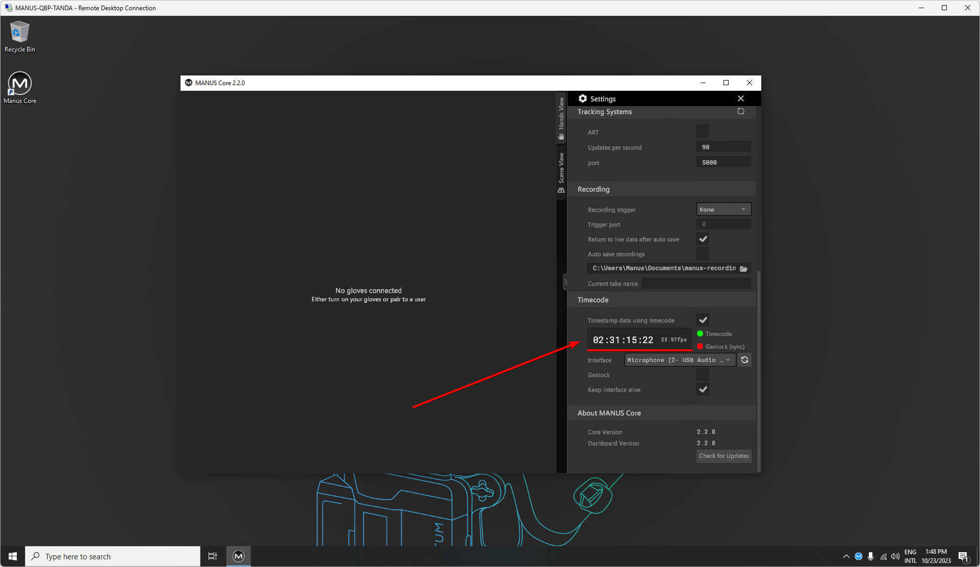- Configure MANUS Core to use the USB audio interface with the continuous synced timecode.