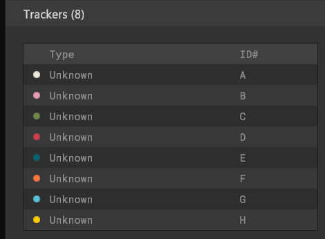 Trackers | Absolute space trackers coming in through the supported tracking systems. |