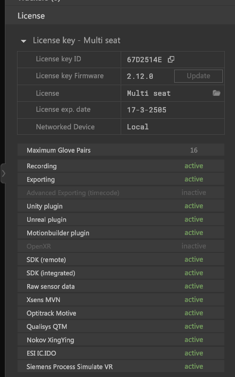 icon next to it. - License Key Firmware: Showing the current version of the firmware installed on the license key. And the ability to update the firmware with the