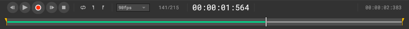 Shows the current time during playback. Time is shown as HH:MM:SS:FFF by default. When the recording has timecode available, this will be shown as HH:MM:SS:FF |