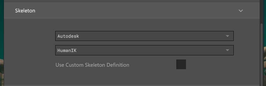 allows you to load a manual mapping from our internal bone name to a specific bone name. The resulting fbx will use the specified bone names. Below is a shortened example skeleton definition showing a mapping to Autodesk HumanIK