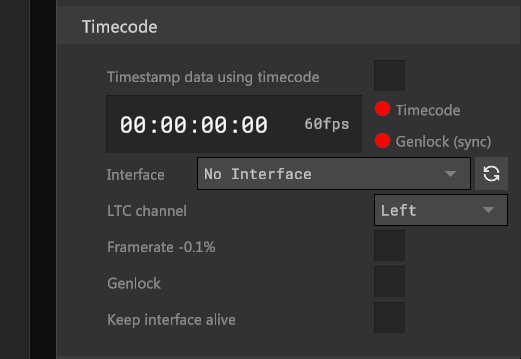 7. Make sure to enable Timestamp data using timecode to make sure data is actually timecoded.