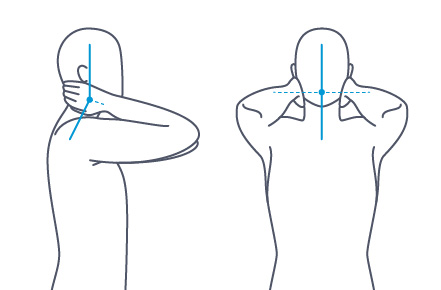 Rest the palm of one of your hands on top of your head while keeping your other hand next to your body.