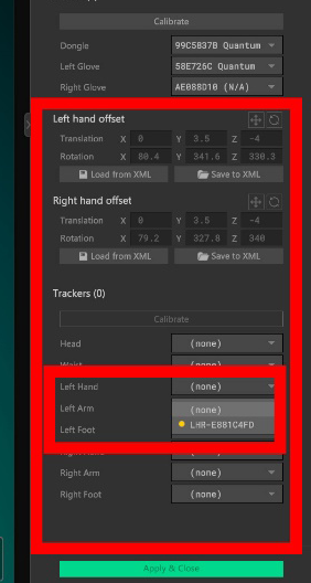 Under your Gloves section you will now see a Tracker assigned to your hands: