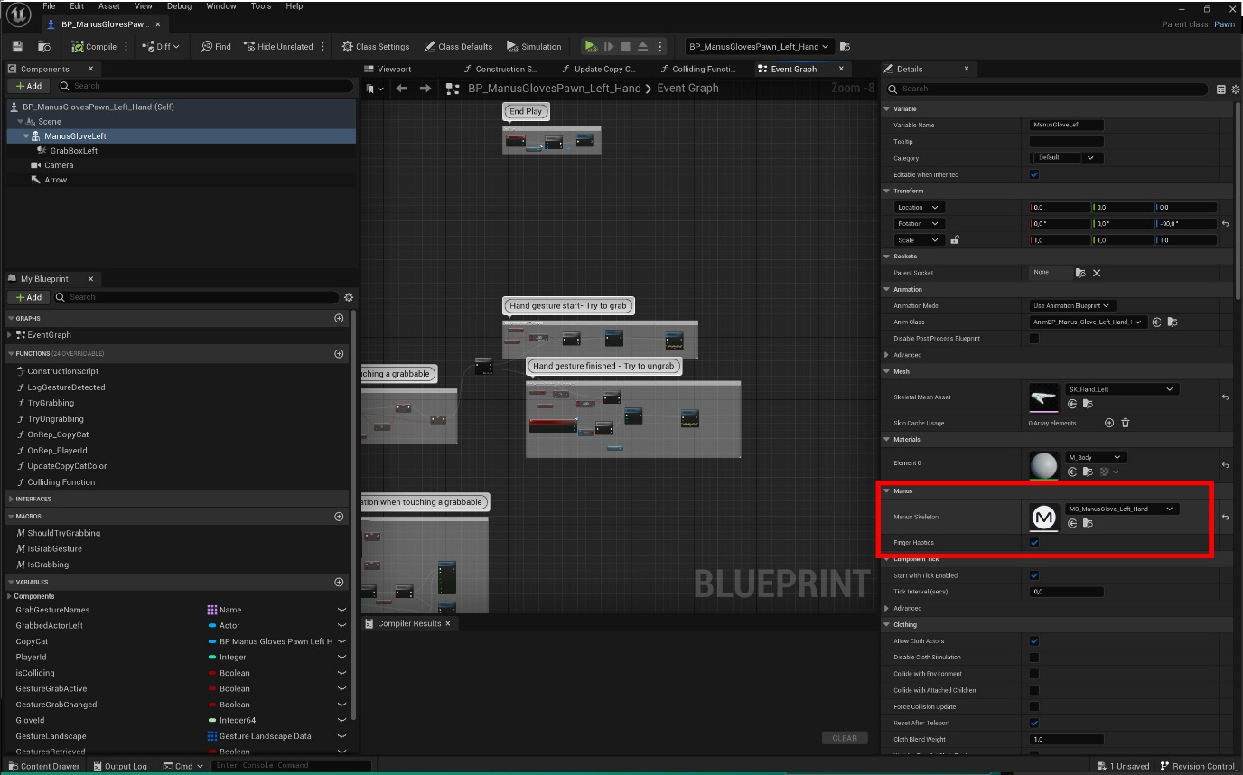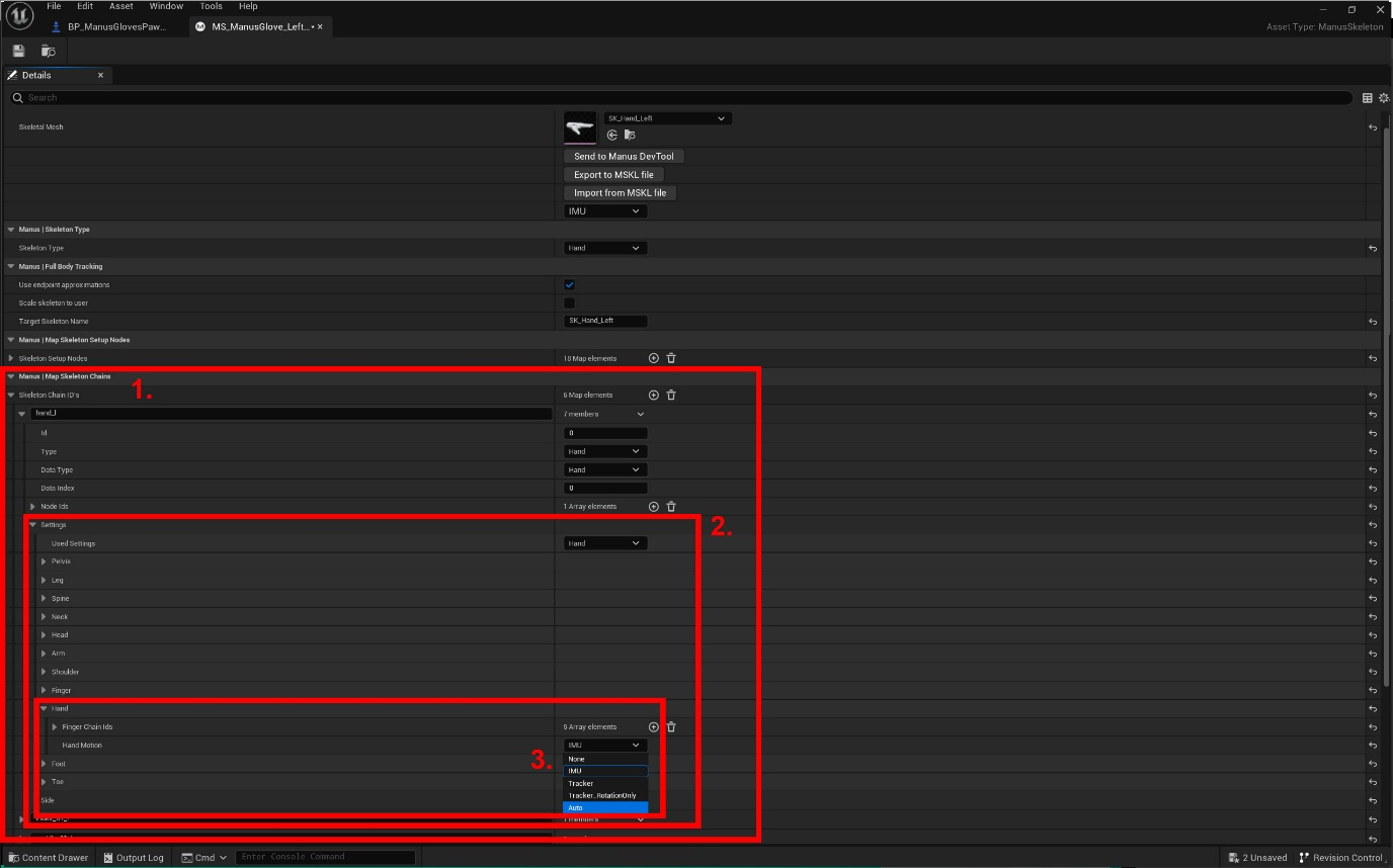 Inside your specific hand pawn that you want to have following a tracker (in this case, the Left Hand), go to your Manus Skeleton and open this.