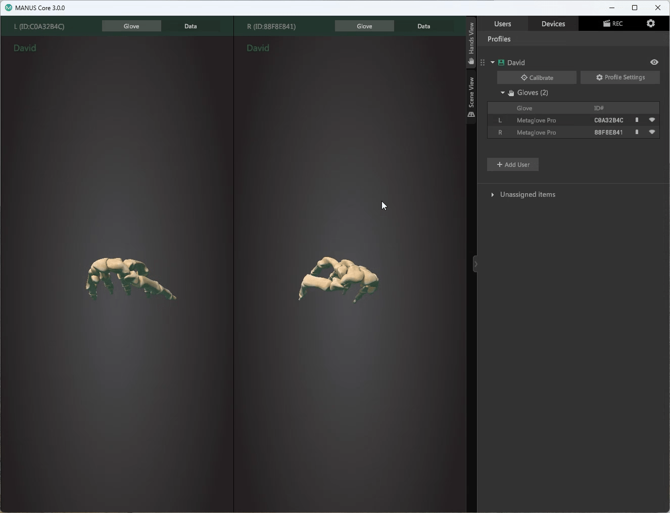With both calibrations finished, you can visually inspect the calibration result in MANUS Core.