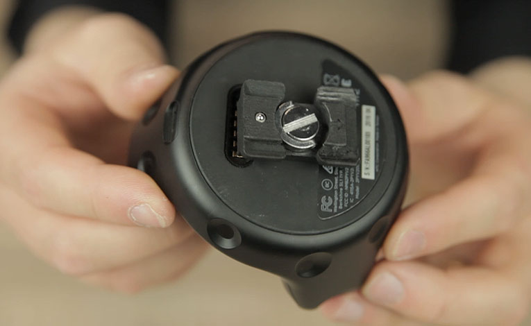 Slide it on the universal mount. The HTC Vive tracker is now ready to be calibrated and used.