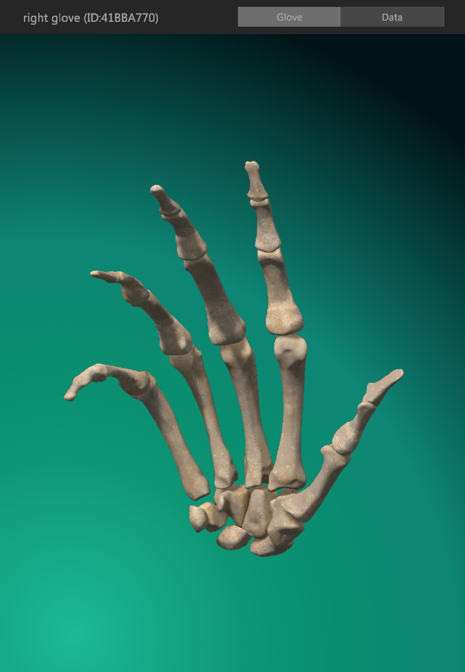 This view allows you to view your virtual hands. It uses a skeletal hand to best show all the bones in your hands.