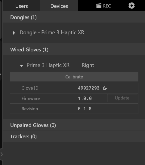 Once your devices are connected, you will be able to calibrate your Prime 3 gloves.