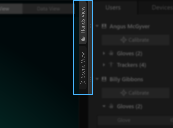 By default MANUS Core shows the Hands View. This view has a Glove mode and a Data mode.