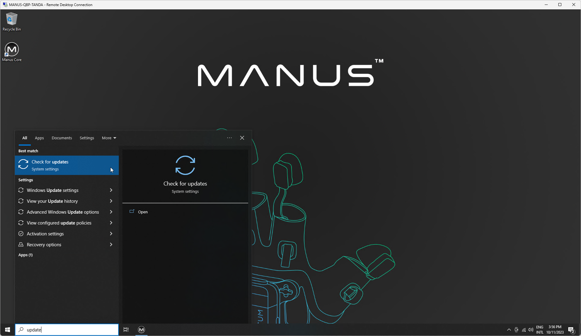 The MANUS Quantum Bodypack runs Windows 10 IoT Enterprise LTSC and should be updated regularly.