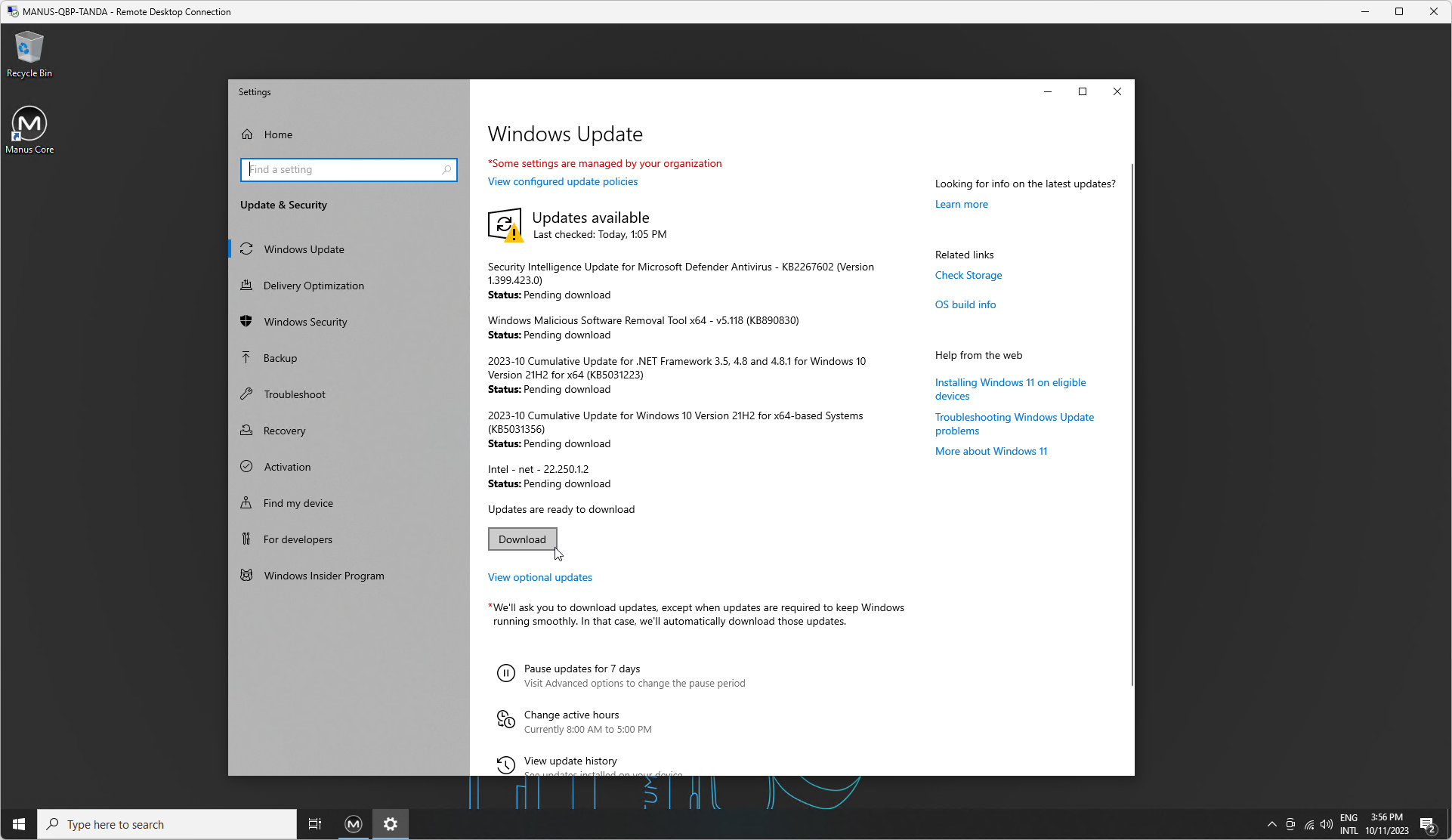 Click "Download" to download and install available updates: