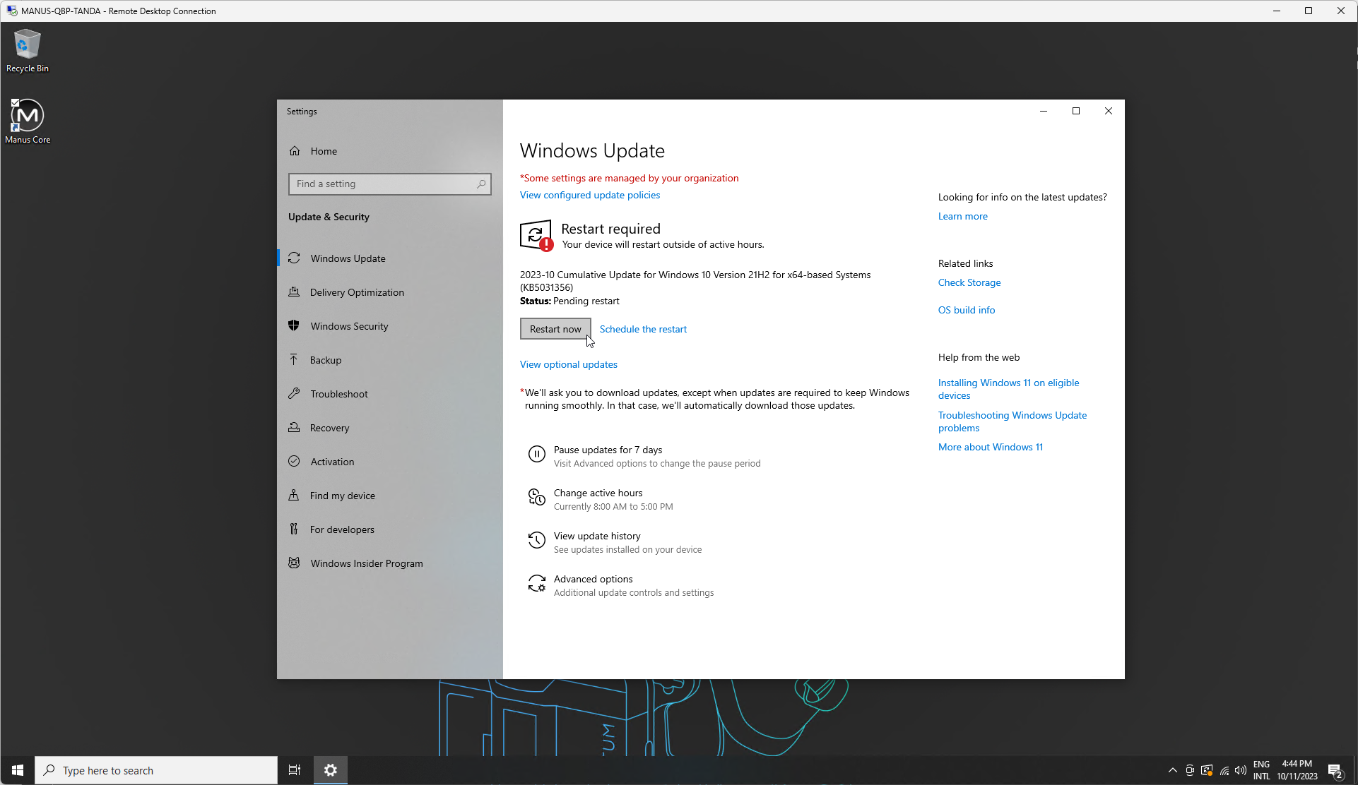 Updating MANUS Core