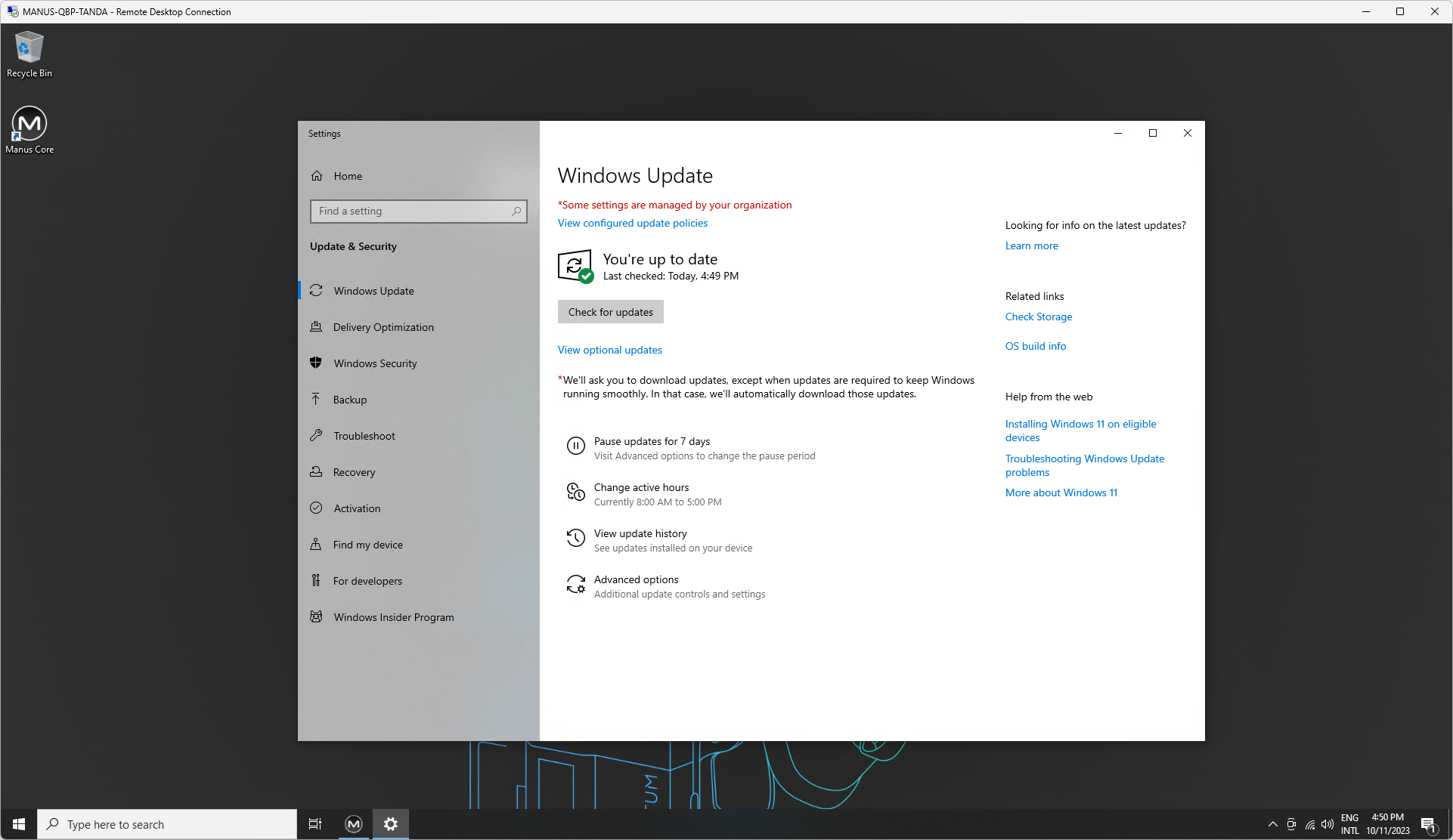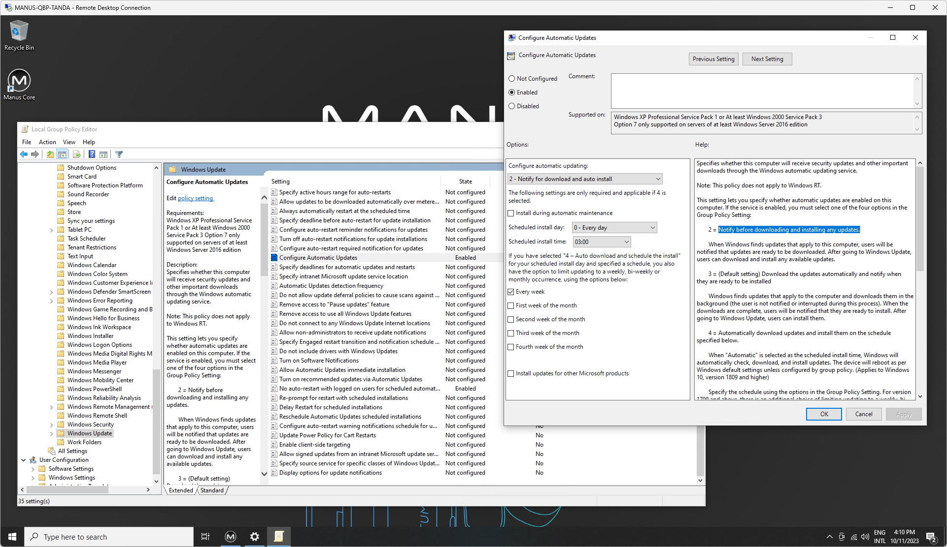 The Bodypack has been configured through Windows Group Policy to weekly check for available Windows Update: