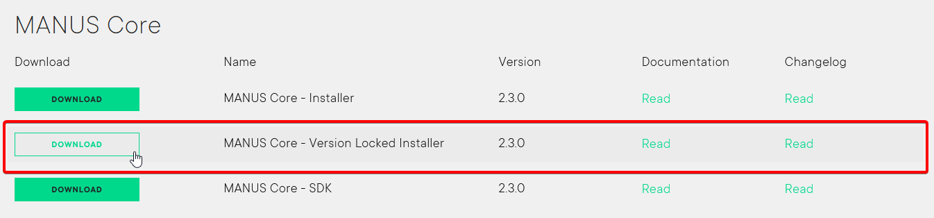 Download the latest version of the MANUS Core Version Locked installer.