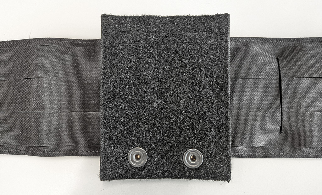The optional MANUS Bodypack Belt comes with a dedicated velcro (loop) patch to attach the Bodypack to.