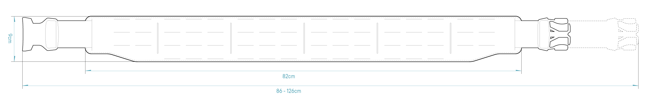The Bodypack Belt is user adjustable between 86 - 126cm (34 - 50 inches).