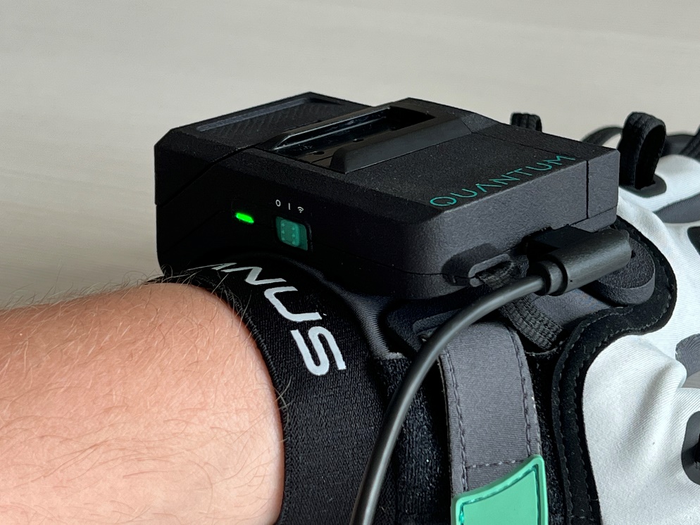 The Quantum Metagloves use electromagnetic field to track the position of your fingertips. Inside the casing, there is also an IMU to track the rotation of your wrist.