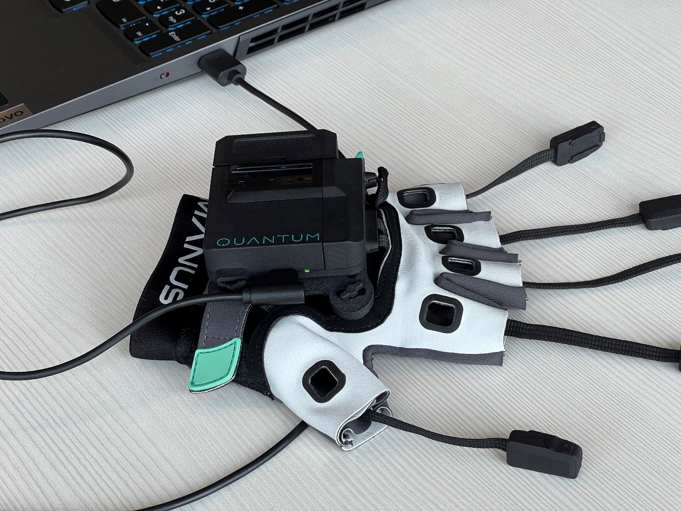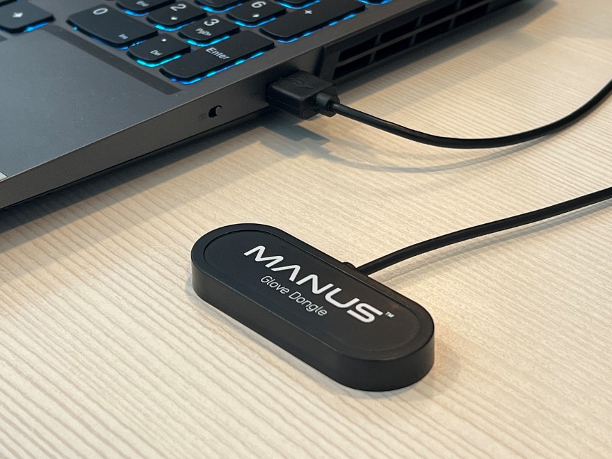 Open MANUS Core Dashboard, plug the gloves to your PC with the included USB C cable, and turn them on. Just like the dongle, they will appear in your devices. You need to update them one by one. Select your first glove, and like with the dongle, click on the update button and do not unplug the gloves till the process is finished.