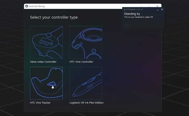 From the Controller Pairing panel select 'HTC Vive Tracker'.