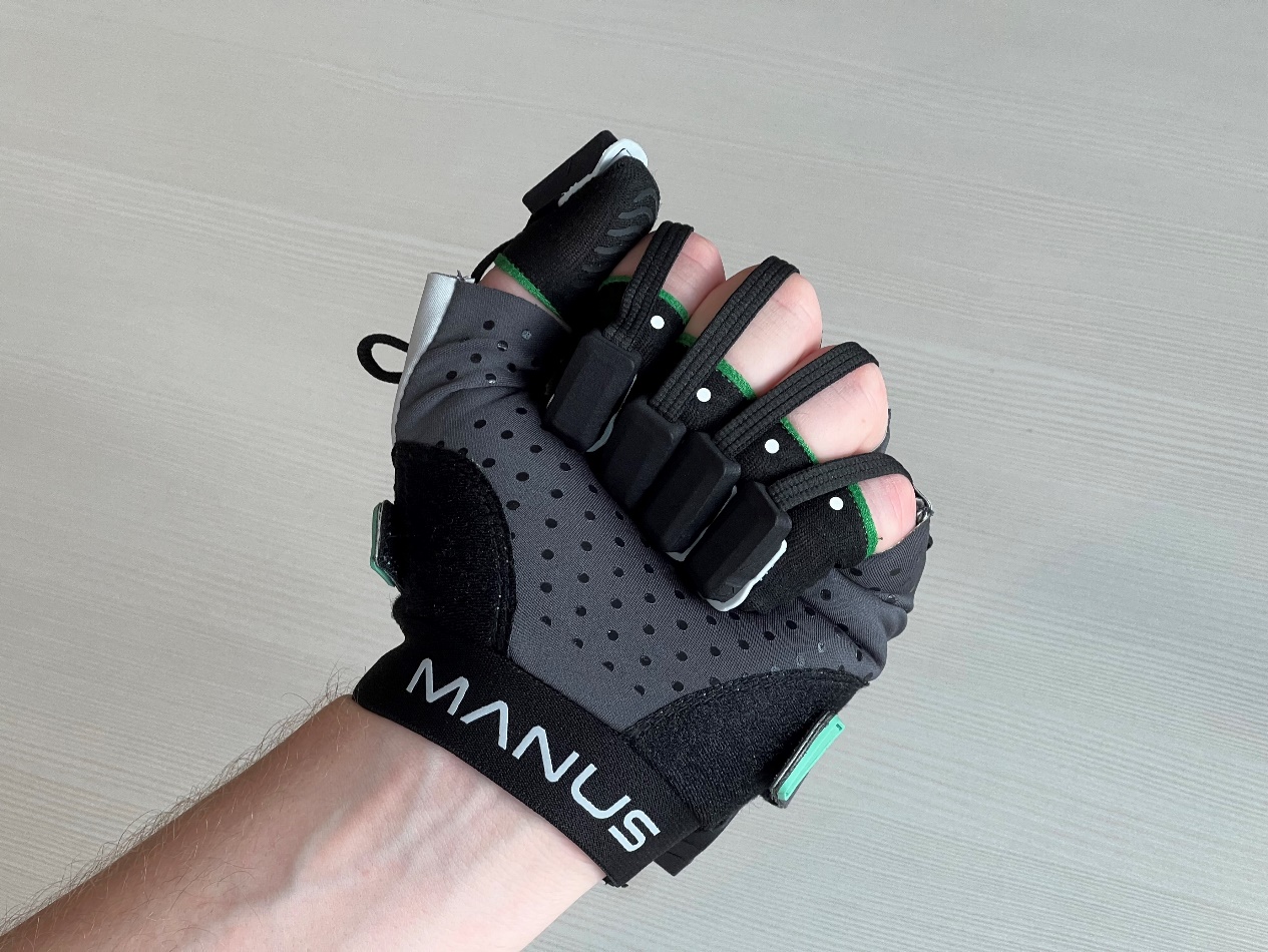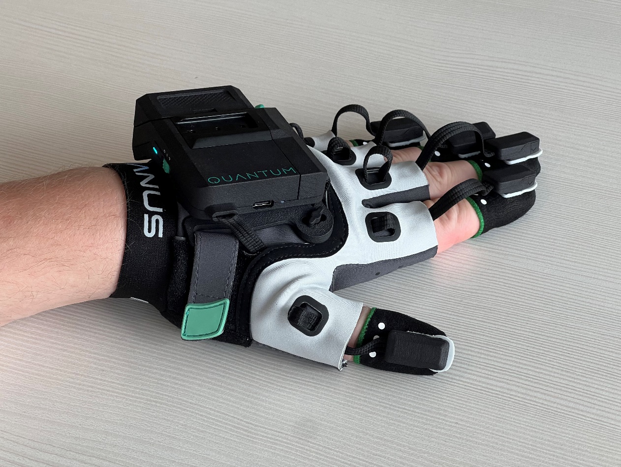 The Quantum Metagloves use electromagnetic field to track the position of your fingertips. Inside the casing, there is also an IMU to track the rotation of your wrist.
