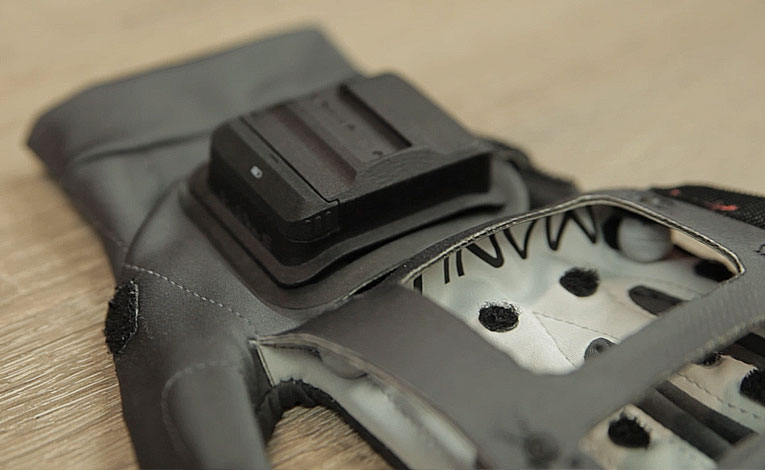 By flipping over the fabric you can now expose the electronic housing.