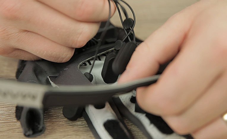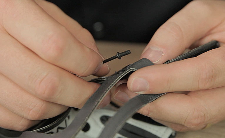 Detach the adjustment flap and gently remove the fabric from the corners.