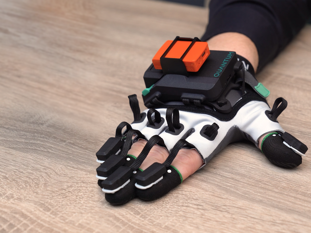 The Xsens Metagloves use electromagnetic field to track the position of your fingertips. Inside the casing, there is also an IMU to track the rotation of your wrist.