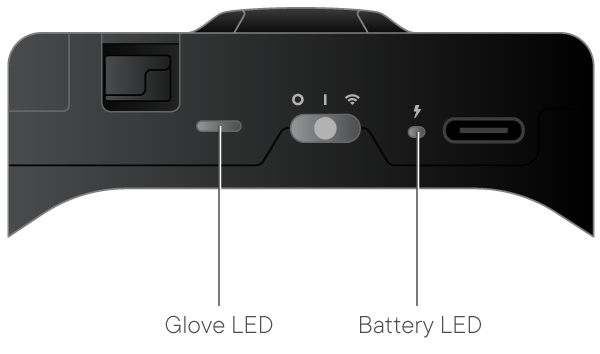 There are two indication LED's on the gloves.The glove status LED and the battery status LED.
