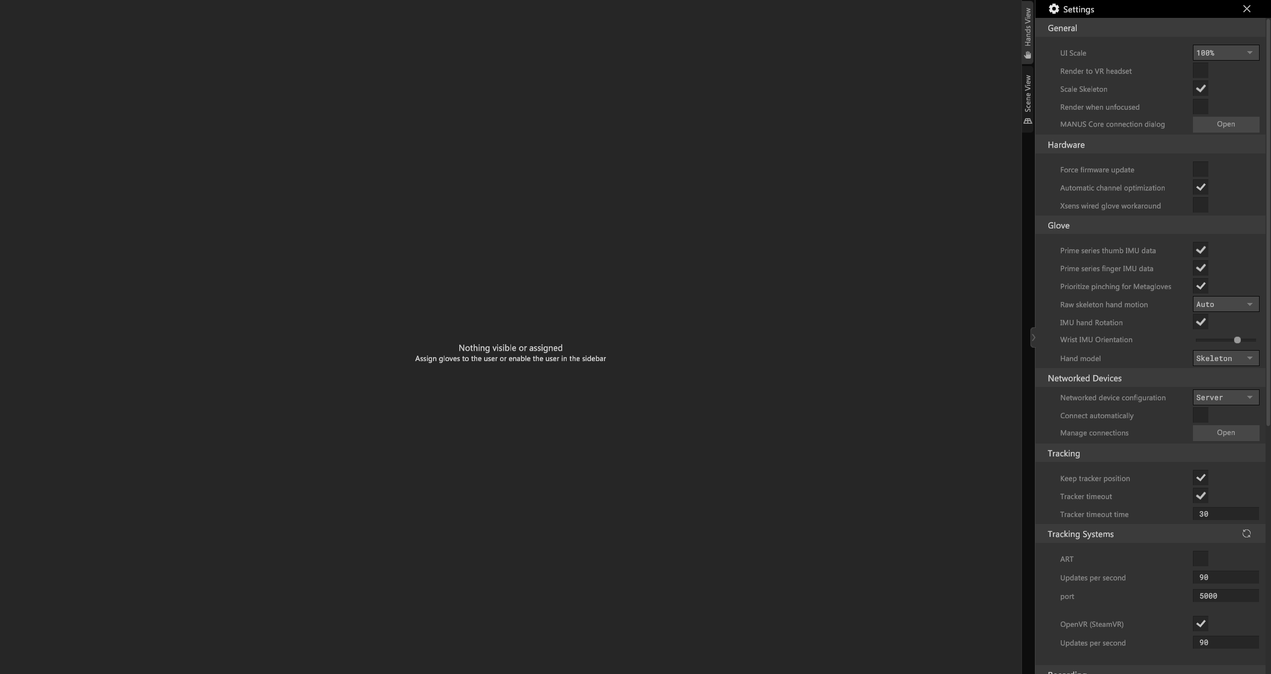 Trigger: If you are using PeelCapture software and you want your MANUS Core recording to start simultaneously, make sure this checkbox is on.