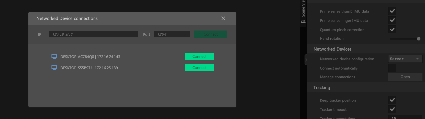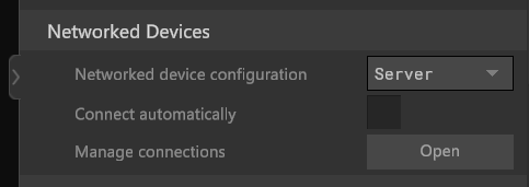 If MANUS Core is configured as Server and Connect automatically is enabled, any MANUS Core instances on the network configured as Client will be automatically added to the Server.