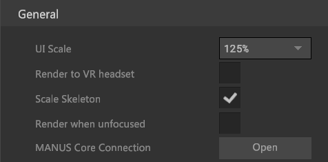 Keep this setting checked if you want to have the models within MANUS Core Dashboard scale based to the user's proportions. This setting only applies to all models within MANUS Core Dashboard and is not a MANUS Core wide setting. More information on this feature here.