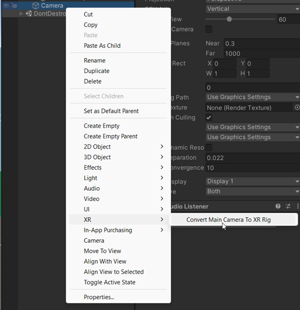 First, make sure your scene has a camera tagged as "MainCamera". Convert the camera to an XRRig if needed.