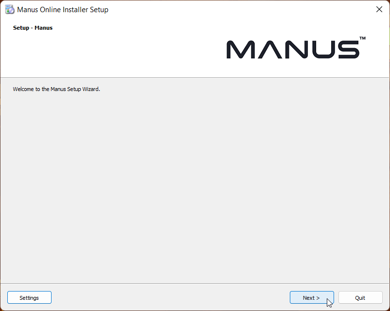 Download the latest version of the MANUS Core Installer from the Downloads page to get started.