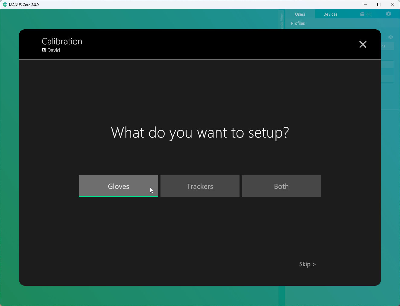 When using MANUS Core for the first time, choose your username and continue.